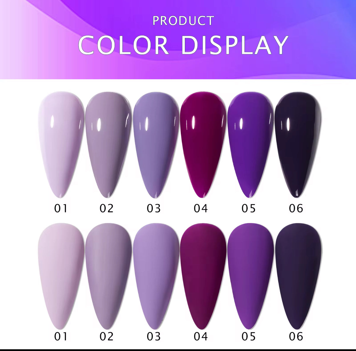 Lilac Lace, Velvet Kiss, Grape Expectations, Raspberry Rush, Plum Perfect and Royal Seduction.